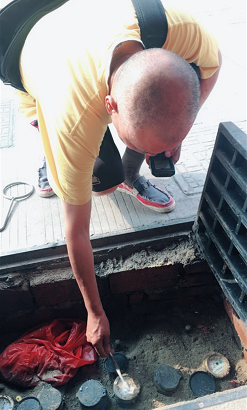 圖為:基層一線抄表人員在高溫下挨家挨戶開展抄表計(jì)量工作。