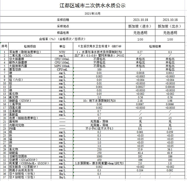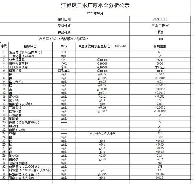 水質(zhì)公示