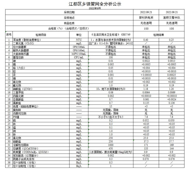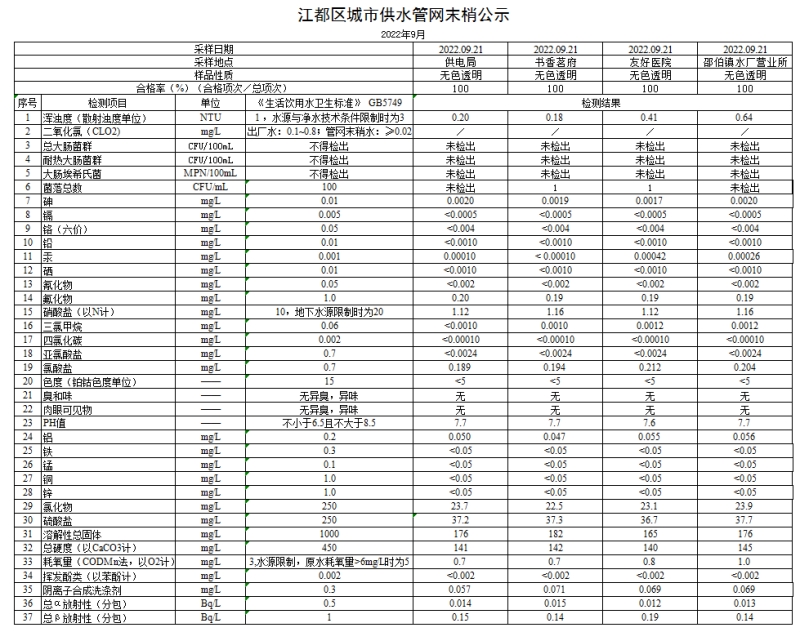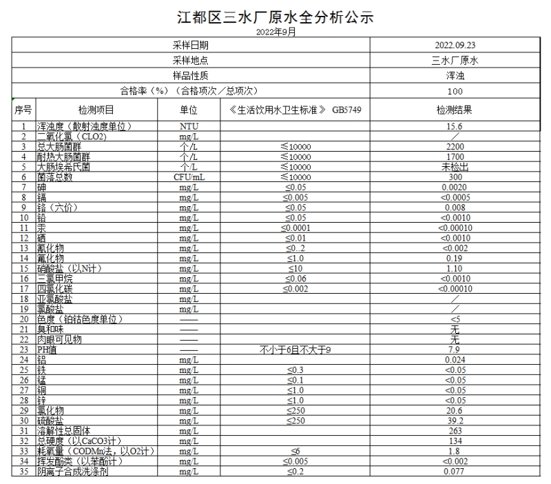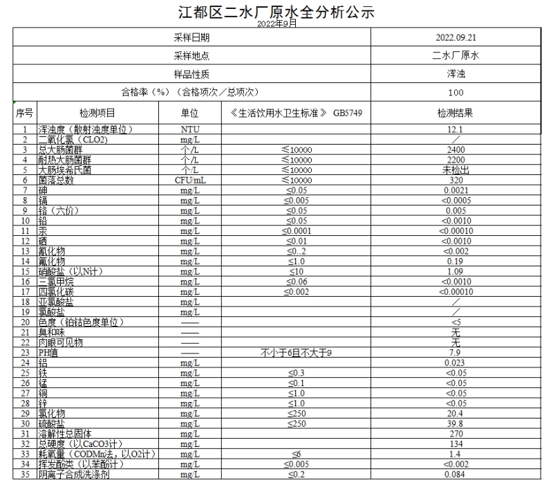 水質(zhì)公示