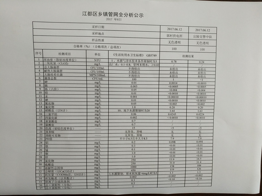 2017年6月江都區鄉鎮管網全分析公示