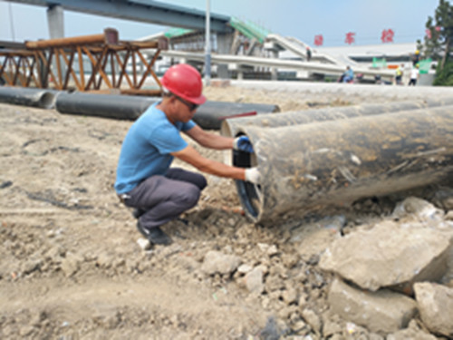 正值三伏天,雖然高溫?zé)崂艘u人,也阻擋不了城市供水人鋪設(shè)供水管道的進(jìn)程。在老淮江路雙徐路至華山路拓寬改造現(xiàn)場(chǎng),龍川控股水務(wù)有限公司的安裝人員嚴(yán)慶章,正忙著鋪設(shè)自來水管道,汗水從額頭滾落下來,眼睛被迷糊了,順手一抹,手中的活沒停。汗衫被汗浸濕得像從水里剛撈上來似的。