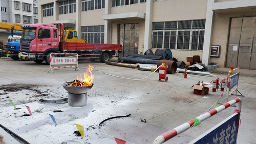在演練前已做好前期準(zhǔn)備工作。在安全距離布置演練設(shè)圍擋、拉三角旗,畫(huà)定演練核心區(qū)域的警示線,同時(shí)在火點(diǎn)畫(huà)定安全距離園圈,保護(hù)演練人員的安全。