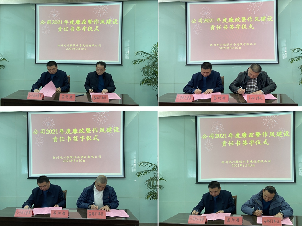 儀式上,公司執(zhí)行董事張勇同志分別與各部門、子公司主要負責(zé)人簽訂《公司2021年度廉政暨作風(fēng)建設(shè)責(zé)任書》。公司黨總支副書記、副總經(jīng)理石元忠同志強調(diào),《責(zé)任書》的簽訂,是加強廉政工作的一種重要形式,希望和要求各部門、子公司在思想上高度重視,會后要認真將《責(zé)任書》內(nèi)容加以消化吸收,在工作上要按照“一崗雙責(zé)”的要求做到統(tǒng)籌兼顧,對各自部門干部職工做好層層要求、層層落實,切實履行廉政工作和作風(fēng)建設(shè)主體責(zé)任。