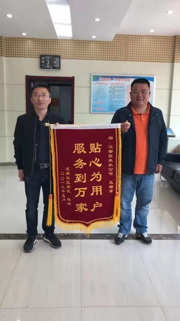 2019年5月的一天,自來水公司又收到用戶送來的錦旗,原來是王梅富同志又一次解決了用戶家中漏水的問題。當公司打電話告知在外面工作的王梅富同志來大廳接受這一喜訊時,他在電話里說這是他應該做的,十分感謝這位用戶的好意,但是今天任務重,就來不及趕回來當面感謝了,他承諾以后會一如既往認真工作,不辜負這份榮譽。
