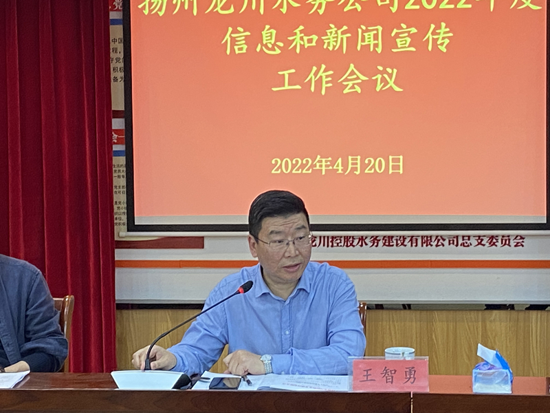 4月20日下午,揚州龍川水務公司召開2022年度信息及新聞宣傳工作會議,總經理王智勇及各部門、各子公司負責人及信息宣傳員三十余人參加了會議,會議由公司副總經理、信息宣傳工作分管領導石元忠同志主持。