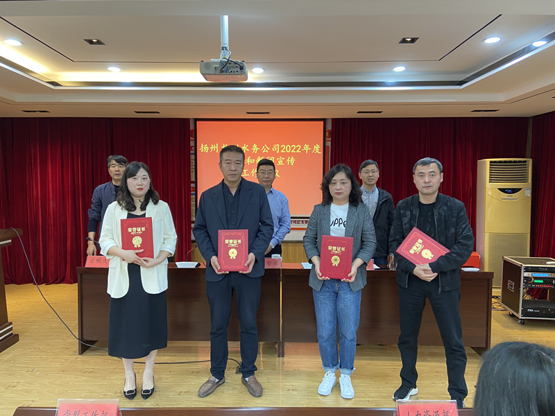 緊接著,對照公司宣傳報道考核辦法,會議通報了2021年度相關考核和獎勵兌現統計結果。根據部門及個人年度積分情況,授予黨群工作部、綜合管理部、龍泉建設工程公司、自來水公司“宣傳工作先進集體”榮譽;授予王麗君、季藝、邵先知、顧晨、高丹婷、張麗“優秀信息員”榮譽;另外,《源源凈水潤萬家——揚州龍川水務公司隆重舉行慶祝建黨一百周年——第二自來水廠深度處理工程運行通水儀式》、《踐行社會責任 彰顯國企擔當》等六篇稿件入選“優秀信息”,與會領導向獲獎單位和個人頒發了榮譽證書及稿酬。