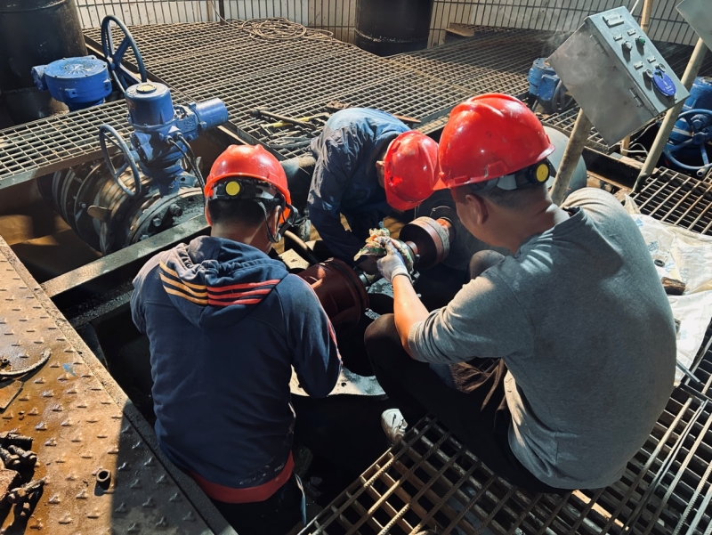 深夜12點(diǎn),維修工作按計(jì)劃開始。二水廠廠長許明、運(yùn)行班長葉欣、機(jī)修班長黃志忠及班組成員均參與了此次維修工作。同志們干勁十足,爭分奪秒。經(jīng)過兩個(gè)多小時(shí)的奮戰(zhàn),順利完成了維修工作。