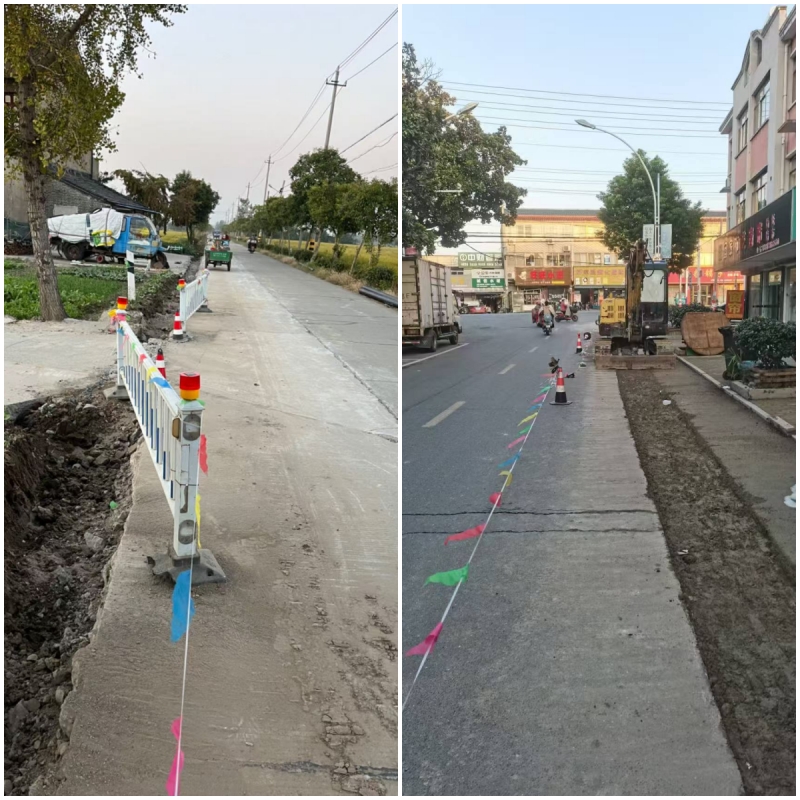 此次宜陵專項債改造區(qū)域管網為原小水廠鋪設的,管網使用年限長,部分管齡超20年,有鐵管、PVC管、PPR管等,管網材質參差不齊,且?guī)准倚∷畯S未能統一規(guī)劃管線走線,導致管網末梢水壓低,存在發(fā)現漏點后閥門關閉無法斷水維修等困難。2024年公司前期投入大量人力和物力走現場、測繪、拿方案,最終決定將該區(qū)域老管網全部廢棄,鋪設DN200和DN150球墨鑄鐵管作為供水主管網與區(qū)域供水管網相接,進村入戶支管網采用DN110-DN25PE管鋪設。